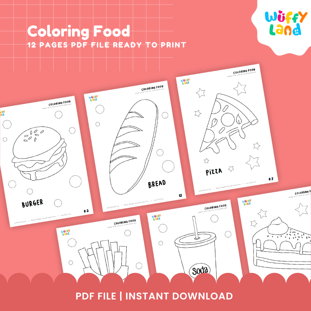 - Color and Shape Recognition: Children learn to identify various colors and shapes through different types of food depicted in the coloring book.