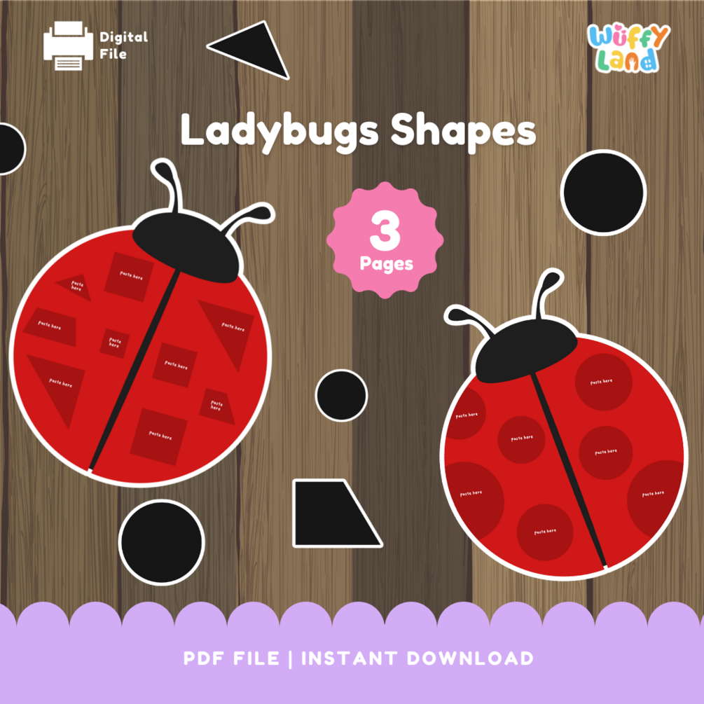 Ladybugs Shapes Activity - 3 Pages Printable Fun & Learning!