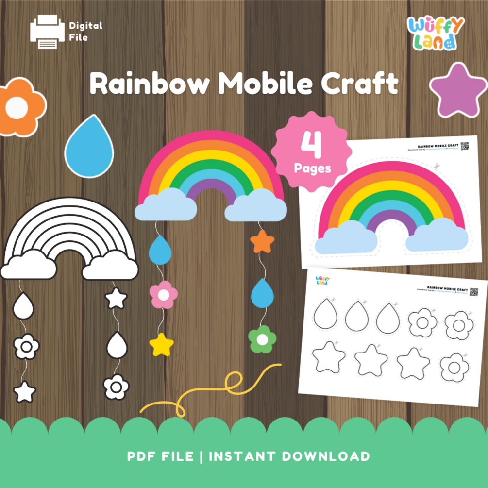 Bring a burst of color into your child’s room with this Rainbow Mobile Craft Printable! 🌈 Perfect for a rainy day activity or a vibrant classroom project, this DIY rainbow and star mobile is an engaging, hands-on craft that kids will love. Simply download, print, cut, and assemble to create a cheerful mobile that adds a touch of magic to any space! 🌟