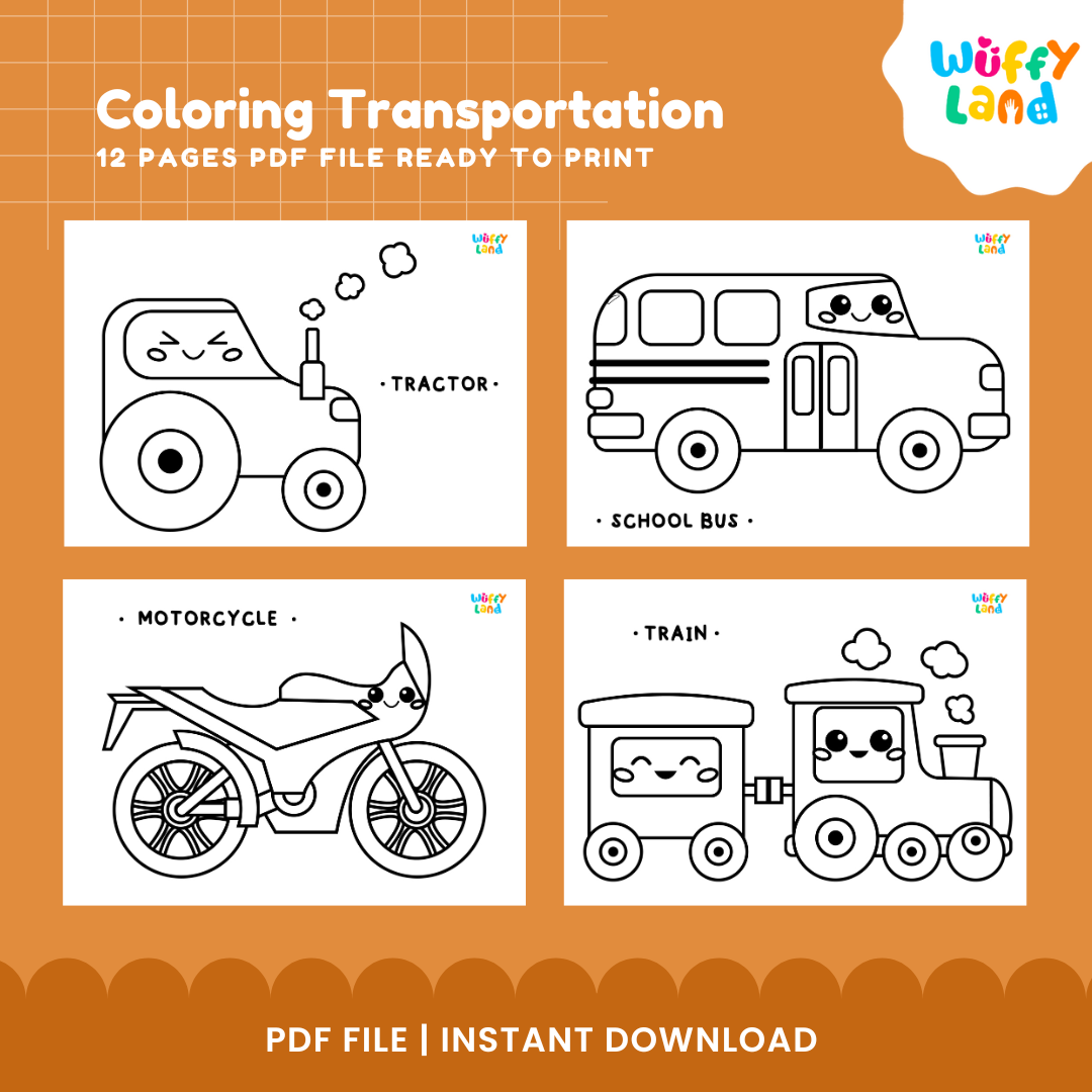 Transportation Coloring Pages for Kids - 12 Pages Printable